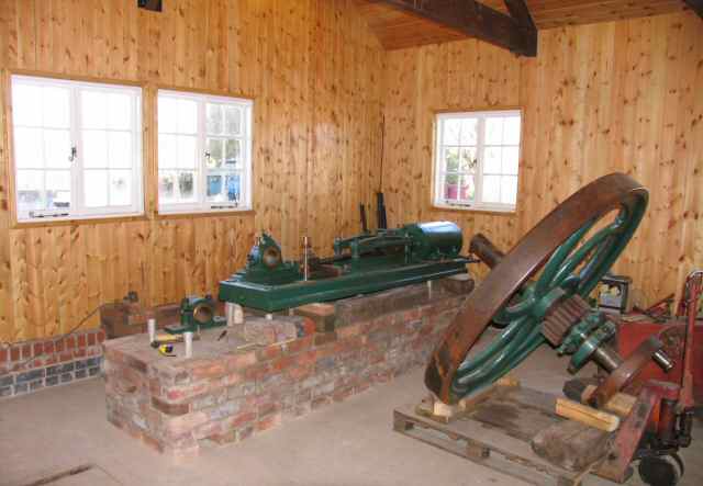 The agitator engine has also been moved into 'E' Engine House. This picture shows the flywheel and outline of the brickwork for the bed. The engine itself is shown in front of the storm water pump in this picture.