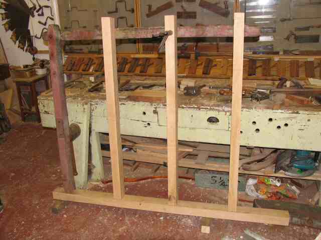 • Work has also commenced on repairing the pipe drug. The wood has been kept in store to allow it to season. This picture shows part of the framework for the turntable which the front wheels are attached to.