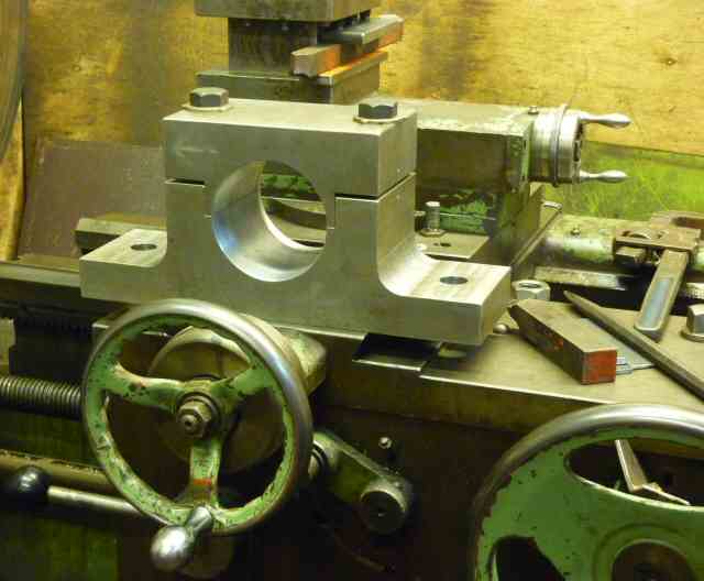 • More parts for B engine are being manufactured. Here is a bearing which will be located inside the governor pedestal. The pattern for the governor weights has also been turned.